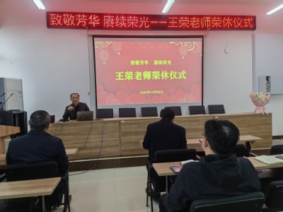 致敬芳华,赓续荣光。2024年12月6日,我院为王荣教授举行了一场庄重而温馨的荣休仪式,学院党委书记黄金标及全体教职工出席仪式,仪式由学院院长王涛主持。