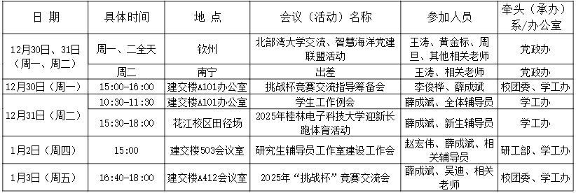 2024年秋季学期第17周建筑与交通工程学院重要会议(活动)安排