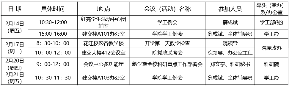 2025年春季学期第1周建筑与交通工程学院重要会议(活动)安排