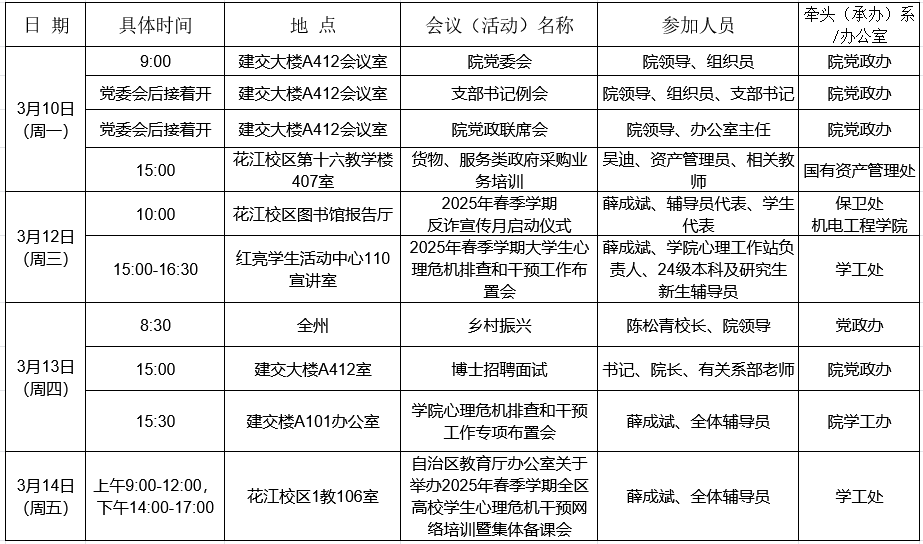 2025年春季学期第4周建筑与交通工程学院重要会议(活动)安排