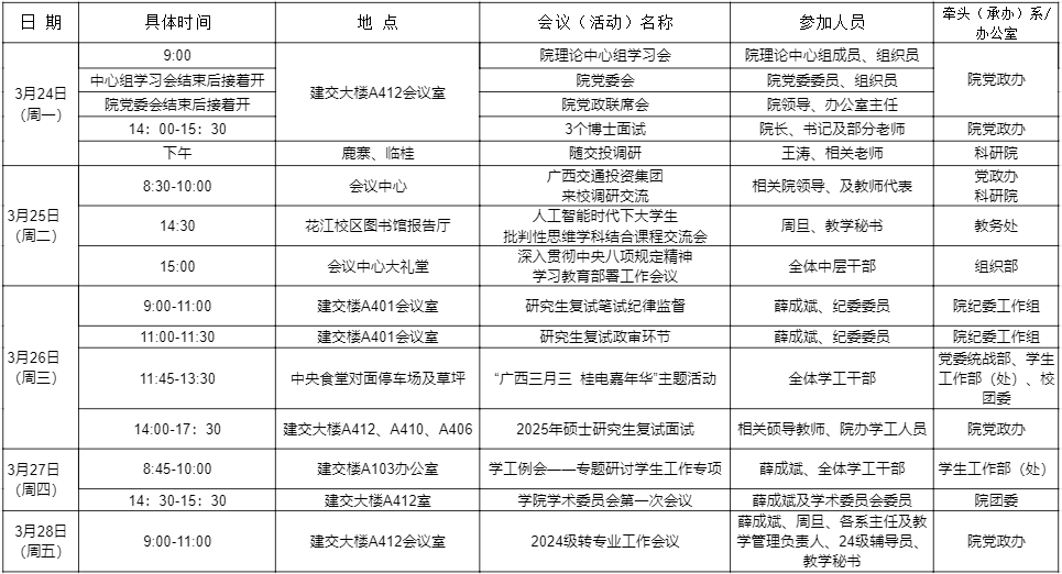 2025年春季学期第6周建筑与交通工程学院重要会议(活动)安排