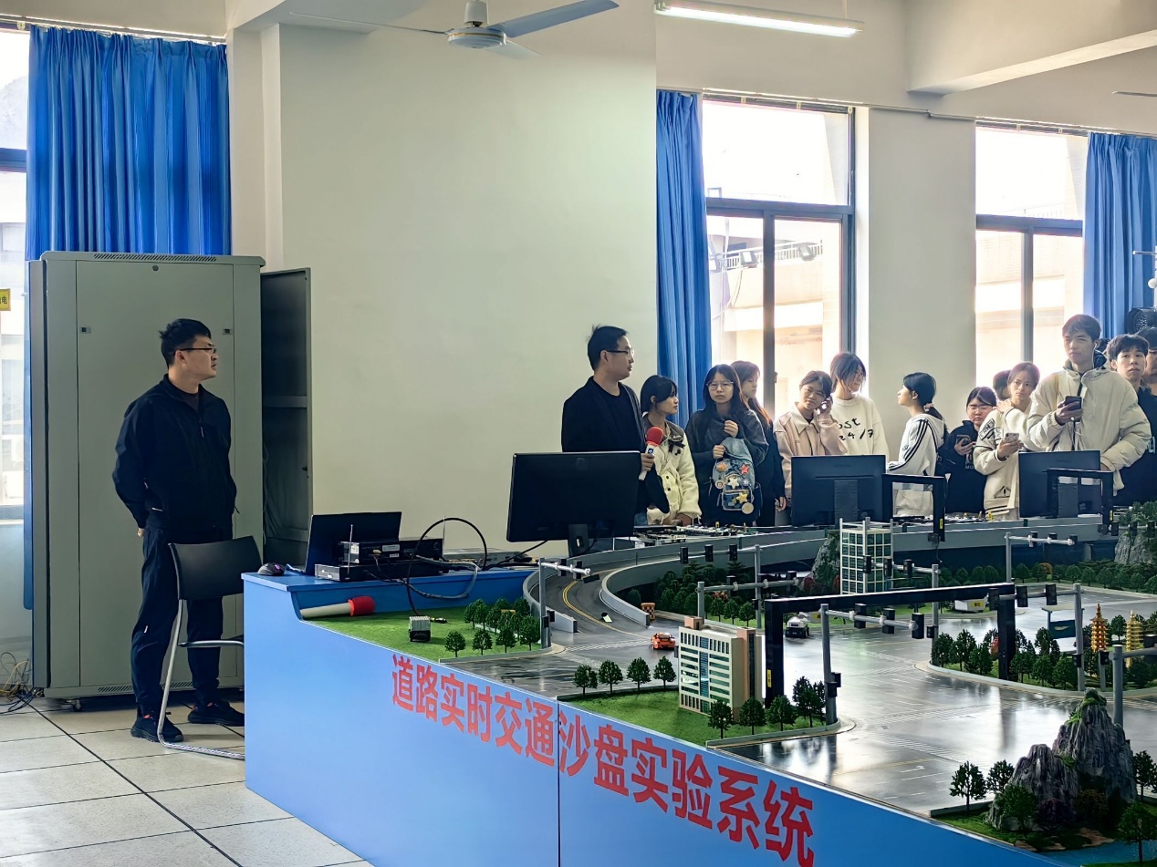 廉冠副教授详细介绍了广西智慧交通重点实验室中的虚拟驾驶仿真平台、交通大数据分析平台、交通信息及控制实验平台、智慧交通综合实验系统、智能交通信号灯控制系统、自动驾驶实验平台等关键设备,并现场展示各平台的实际运作过程。