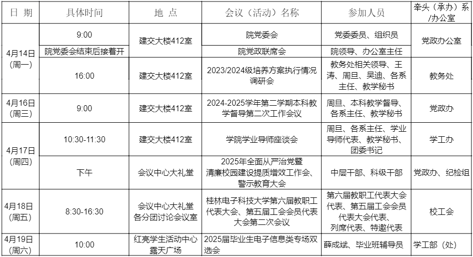 2025年春季学期第9周建筑与交通工程学院重要会议(活动)安排