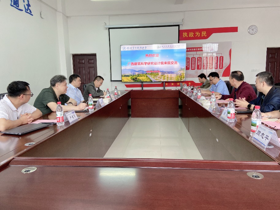 4月25日上午,广西建筑科学研究设计院院长顾涛、副院长许维超一行到建筑与交通工程学院调研交流。学院党委书记黄金标、副院长郑文亨、副院长吴迪等参加座谈交流。
