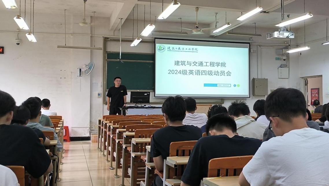 会上,黄治华辅导员从多维度强调英语四级的重要性。他指出,在考研竞争日益激烈的当下,英语四级成绩是许多高校复试筛选考生的重要参考,高分通过更能为复试增添优势;而在就业市场,英语四级证书是众多企业招聘的基本门槛,尤其对建筑与交通工程领域的国际化项目,良好的英语水平是职业发展的有力助推器。此外,英语四级成绩也是学院对学生毕业的硬性要求,关乎每位同学的学业进程。最后,辅导员黄治华为大家预告了即将开展的英语四级培训班,强调了培训班的相关纪律,为培训班的顺利开展奠定了基础。