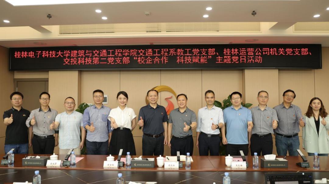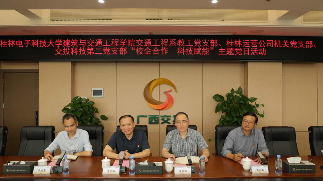 4月29日,交通系教工党支部与广西交投桂林运营公司机关党支部、广西交投科技有限公司第二党支部在广西交投桂林运营公司总部开展“校企合作 科技赋能”主题党日活动,学院党委书记黄金标、交通系教工党支部周长红、岑成贤、王文翰三位同志参加了活动。