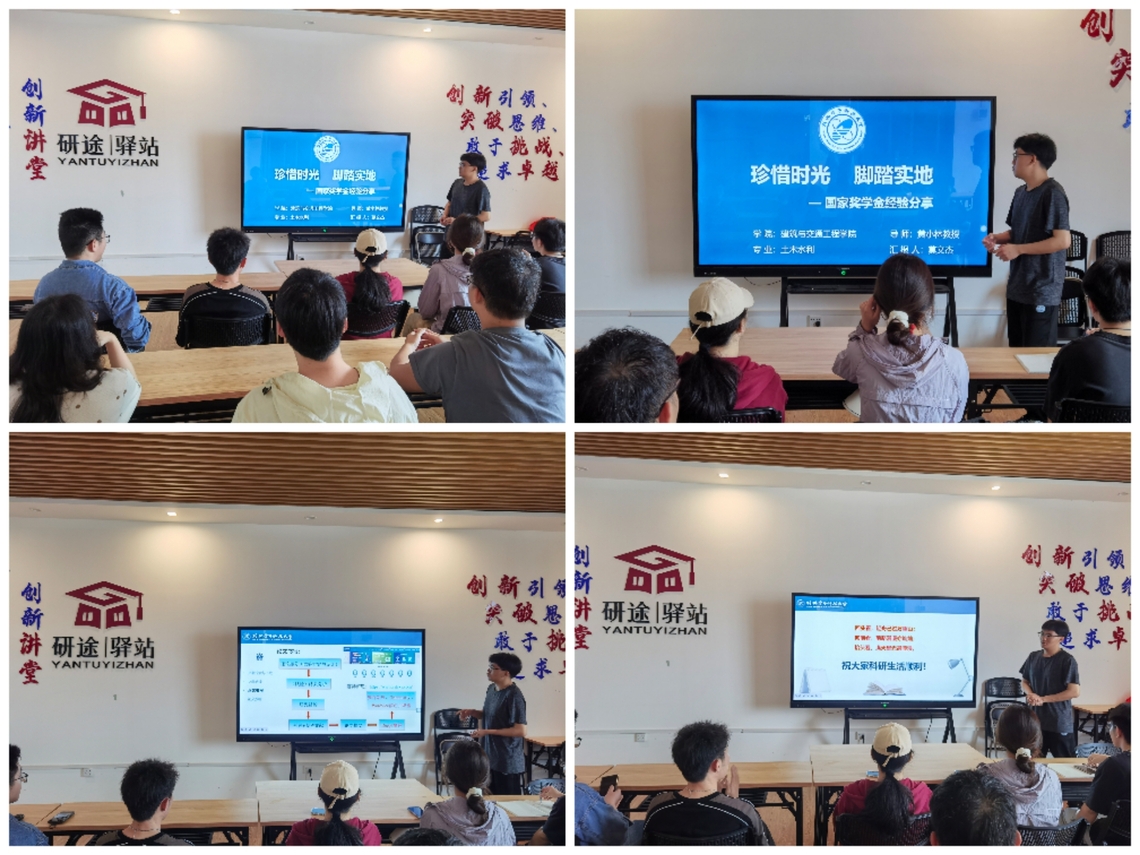 5月8日,建筑与交通工程学院第六期研究生创新讲堂在“研途驿站”举行。国奖获得者莫文杰围绕“珍惜时光 脚踏实地”主题,带来科研经验分享。