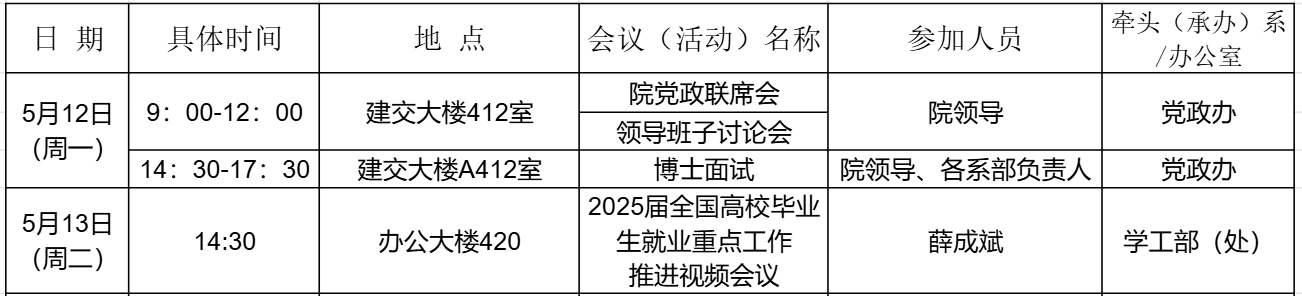 2025年春季学期第13周建筑与交通工程学院重要会议(活动)安排