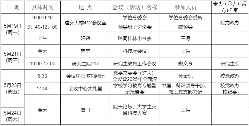 2025年春季学期第14周建筑与交通工程学院重要会议(活动)安排