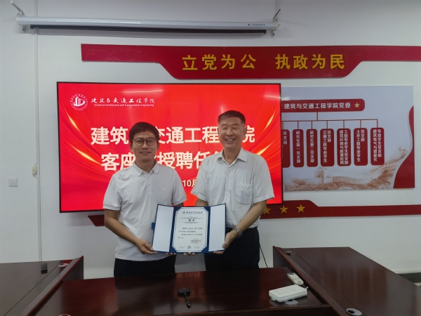 10月17日下午,建筑与交通工程学院在412会议室举行客座教授聘任仪式,正式聘请北京工业大学关宏志教授担任学院客座教授。学院院长王涛、交通工程系全体教师出席仪式。