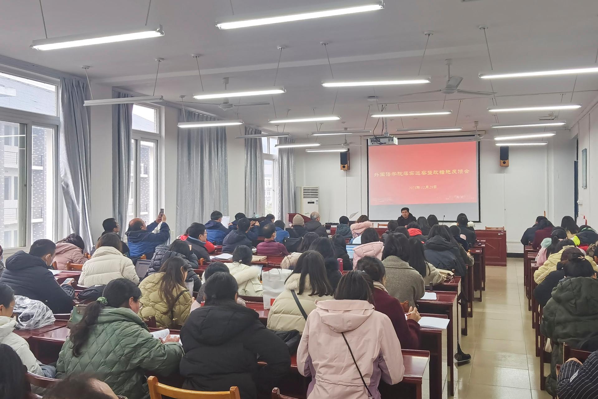 12月29日,外国语学院在花江校区第三教学楼505室召开落实巡察整改工作反馈会,学院全体教职工参加会议。