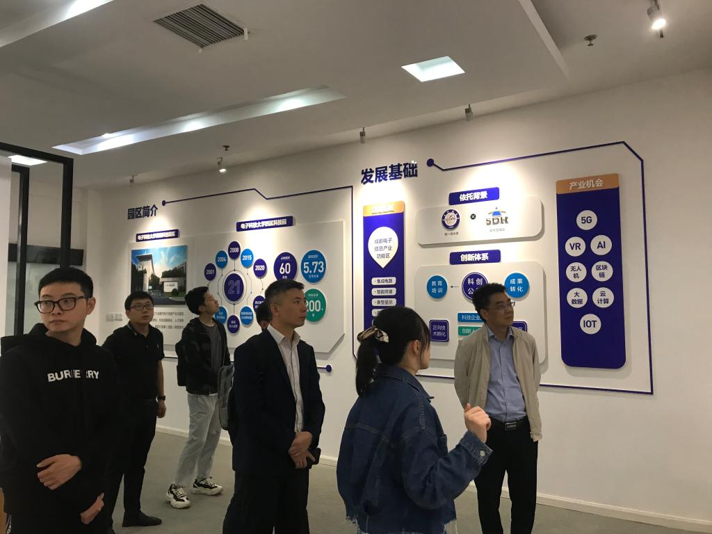 2022年11月2日,三亿官方官网三亿(中国)_三亿(中国)科研院所院长曹卫平一行6人赴电子科大科技园参观调研,电子科技大学科技园总经理蒋一、副总经理唐海韵接待。