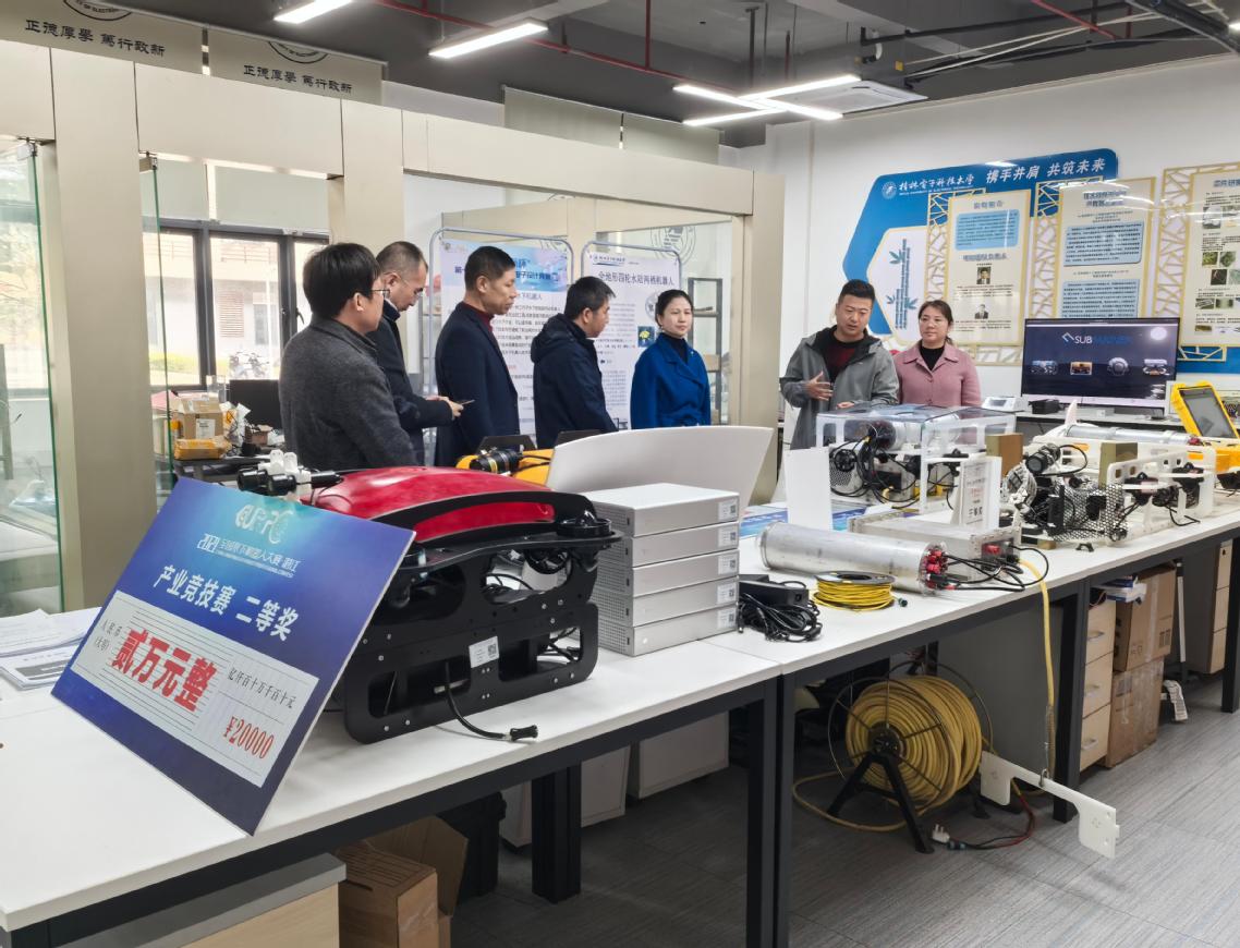 期间,考察组参观了广西半导体芯片封装与测试科技成果转化中试研究基地、水下机器人测试实验室、科技成果展厅。灵川县科技工信和商贸局、广西惠明电气有限公司、灵川县龙发房地产开发公司、桂林粉易科技有限公司等单位一同参加。