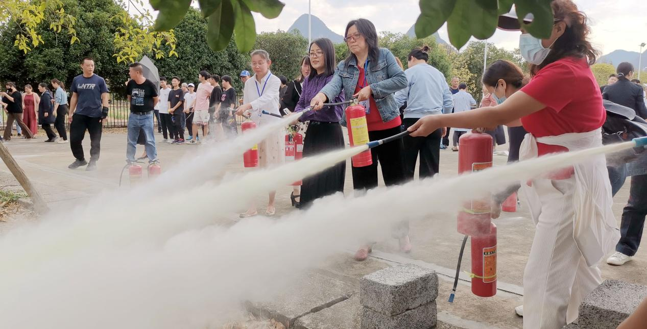 在外空地上,消防指导人员就灭火器类型、使用方法与步骤以及注意事项——最佳喷射距离、角度等进行了现场讲解。全体馆员以两人一组的方式进行了灭火器的实际操作演练。活动中,全体馆员积极参与,按照标准操作灭火器材,顺利完成了本次消防演练活动。