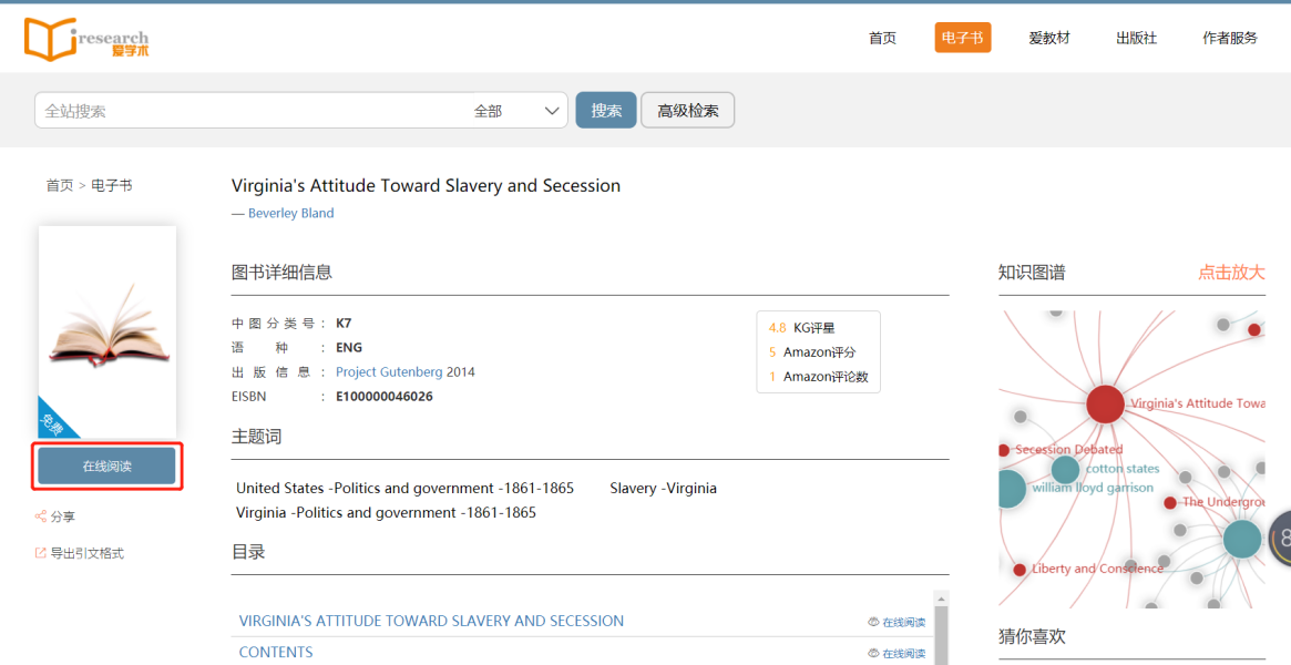 Ø 访问平台三亿官方官网三亿(中国)_三亿(中国)www.iresearchbook.cn,点击右上角的电子书