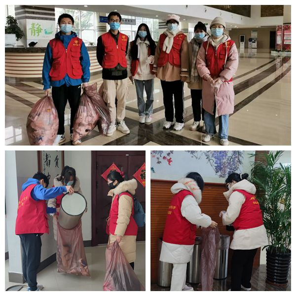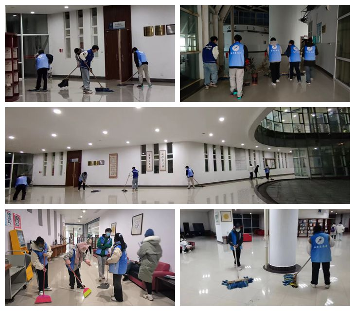 由于进校值班的老师不多,图书馆工作任务繁重,再加上学生流动性大,没有保洁人员,打扫卫生、消杀和巡逻成了比较棘手的难题,两校区图书馆勤工助学的学生以及读者协会的同学看到眼里,他们主动请缨,要求承担起馆内消杀、巡逻、维持秩序和打扫卫生的任务,表现出了当代大学生在疫情面前应有的使命感和责任感。志愿者们每天早上八点,在值班老师的带领下,拿上扫把、塑料袋等开始全面清扫卫生,把图书馆的每个垃圾桶都清理干净;他们还拿上消毒液,把阅览室和书库都彻底消杀一遍,保证防疫工作不留死角,打通疫情防控“最后一米”,营造了图书馆的舒适、干净、卫生的阅读环境。