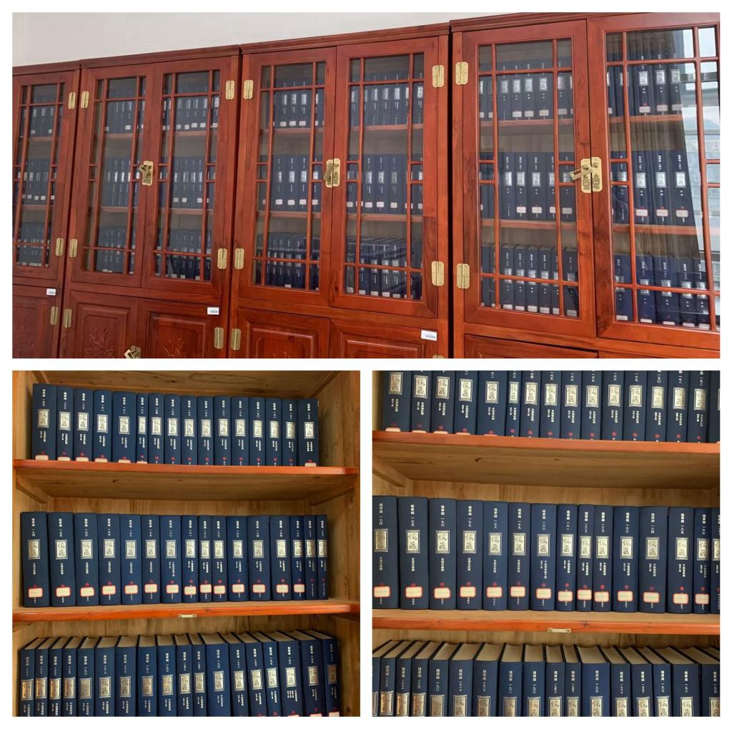 (图为图书馆陈列的儒藏和复兴文库书架)
