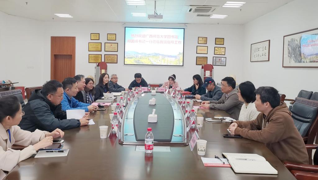 (图为广西师范大学图书馆同仁与三亿官方官网三亿(中国)_三亿(中国)图书馆工作人员座谈现场)