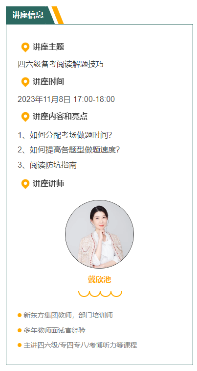 针对阅读题型,本图书馆联合新东方多媒体学习库举办线上直播分享,我们特邀新东方老师为大家带来“四六级备考阅读解题技巧”主题讲座!