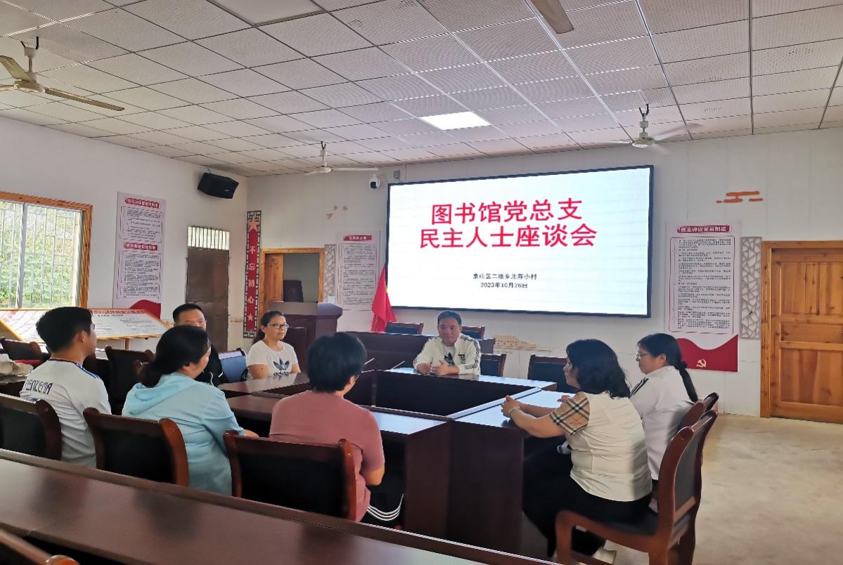 10月26日下午,图书馆党总支在象山区二塘乡北芬村“润心田野”廉政教育基地召开民主人士座谈会。图书馆党总支统战委员主持会议,图书馆党总支书记、副馆长宋江飞、副书记、馆长刘庆华、图书馆民主人士及党总支部分委员参加了会议。