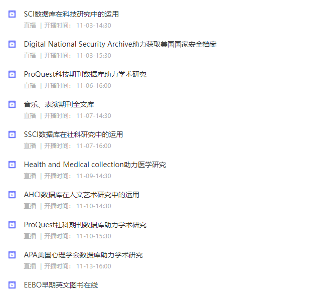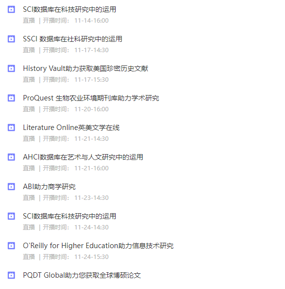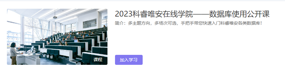 为了使读者能够更好地利用外文电子资源,图书馆推出了“科睿唯安在线学院——数据库使用公开课”。系列课程涉及数据库包括:Web of Science(SCI,SSCI,AHCI),JCR,ProQuest系列产品(含PQDT,Eook Central,ProQuest综合、科技、商学、教育、心理、医学、生物、农学、艺术等期刊库,ProQuest历史文档类数据库等)。