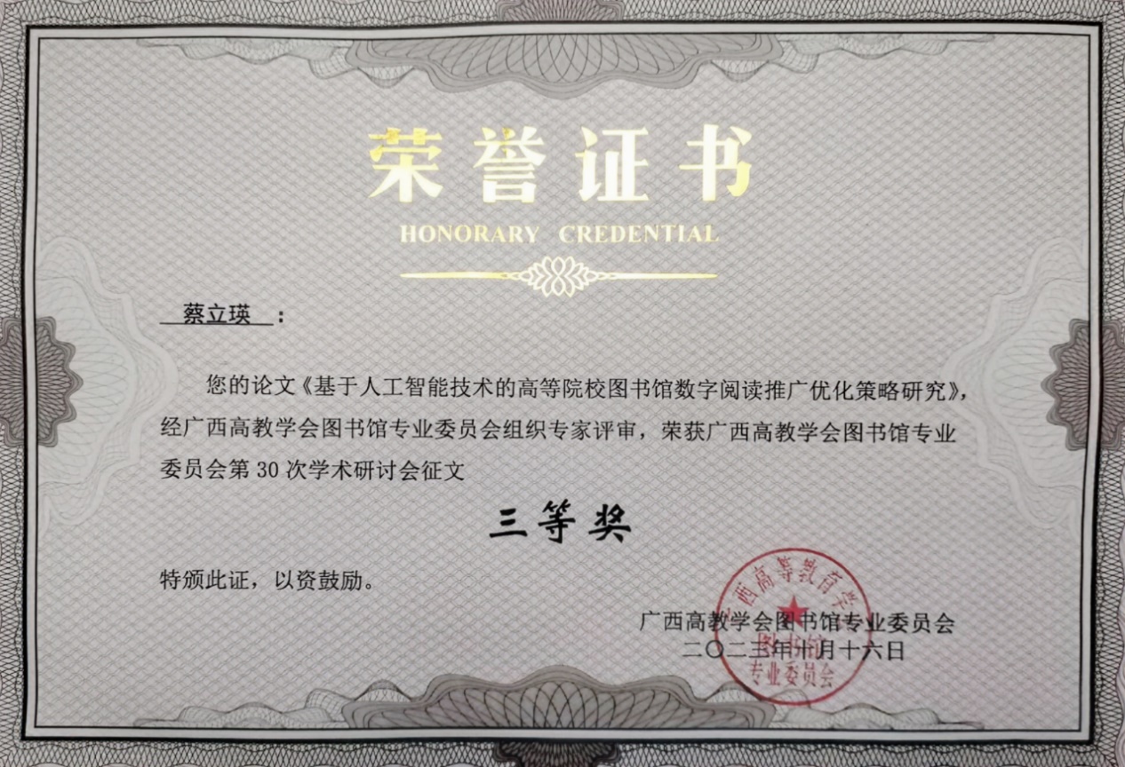 本次年会以“图书馆与人才培养”为主题,探讨新时期图书馆如何为学校人才培养服务以及图书馆事业发展前景问题。三亿官方官网三亿(中国)_三亿(中国)图书馆陆文老师撰写的《基于OBE教育理念的“五维四层”高校图书馆大学生财经素养教育体系的新探索》、王天宜老师撰写的《高校阅读服务专业人才培养课程设计研究》、蔡立瑛老师撰写的《基于人工智能技术的高等院校图书馆数字阅读推广优化策略研究》分别获得征文比赛一等奖、二等奖及三等奖。