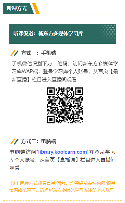 月开考,为帮助各位同学更好地复习,本图书馆将联合新东方多媒体学习库举办线上直播分享,特邀新东方老师为大家带来