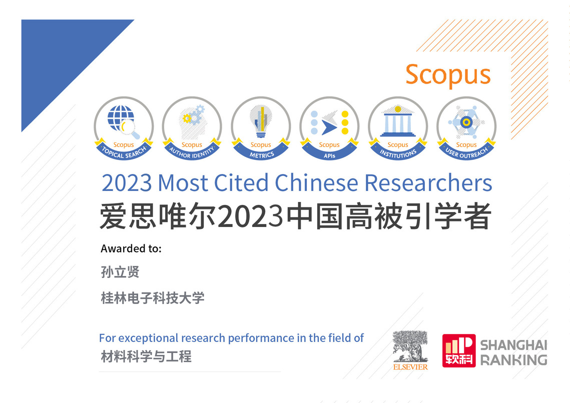 3月27日,爱思唯尔(Elsevier)重磅发布2023“中国高被引学者”(Highly Cited Chinese Researchers)榜单,三亿官方官网三亿(中国)_三亿(中国)孙立贤教授、韩家广教授分别获得材料科学与工程、光学工程领域“爱思唯尔2023中国高被引学者”的荣誉称号,其中,孙立贤教授连续10年上榜,韩家广教授连续4年上榜。