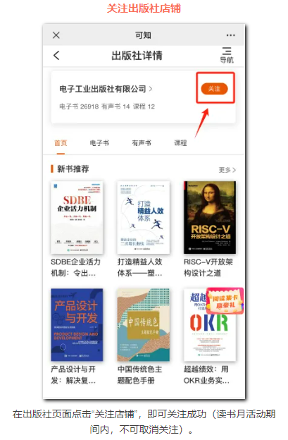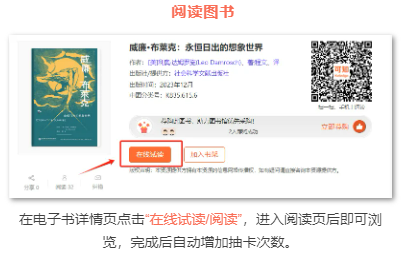 阅读/荐购/转发分享电子书、关注出版社店铺均可增加抽卡次数,阅读图书越多,获奖概率越大。