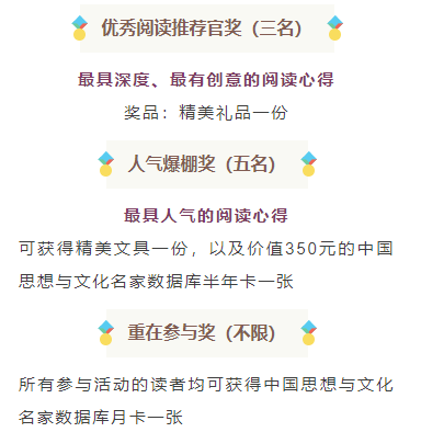 中国思想与文化名家数据库读书月特别策划“遇‘荐’好书,与中国思想文化名家共赴阅读之旅!”活动,邀请你一同探寻思想文化宝藏!推荐你心中的好书,分享你的阅读心得,还有机会成为阅读推荐官,引领校园阅读风尚!快来参与活动,让我们一起在阅读中遇见更好的自己!