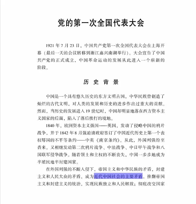 第3步:点击其中任何一本书名或者章节进入查看,即可查找到有关“近代中国社会的主要矛盾”的论述。如图3。