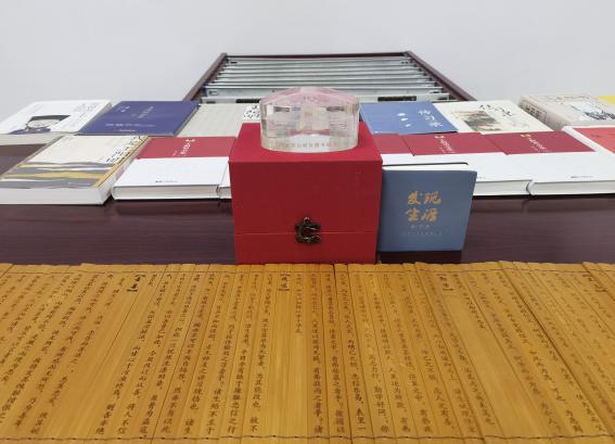 花江图书馆一楼大厅合影 阳明学说图书馆藏展览