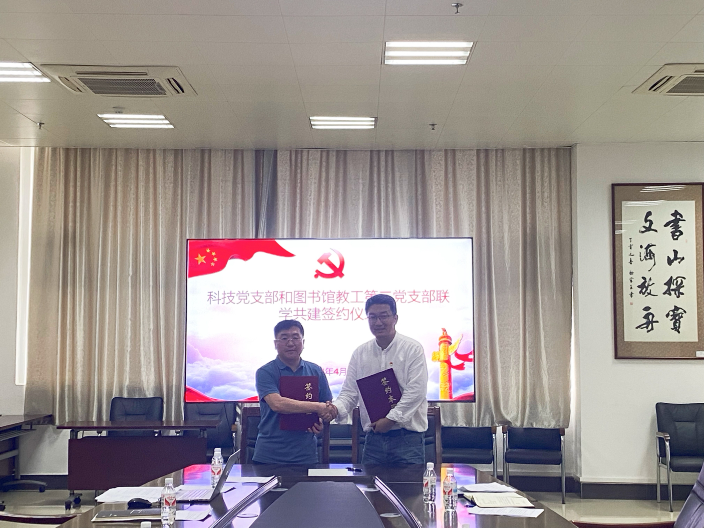4月28日,机关党委科技党支部与图书馆第二教工党支部在图书馆406会议室开展联学共建活动。科技党支部书记马传国、图书馆党总支书记宋江飞、副书记隋智勇和双方支部党员参加了本次活动。