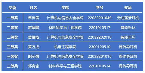 其中,覃祥倩等六位同学成绩突出,受到表彰,现将获奖名单公示如下,请获奖的同学于上班时间到花江图书馆A402找王老师领取获奖证书和奖品。