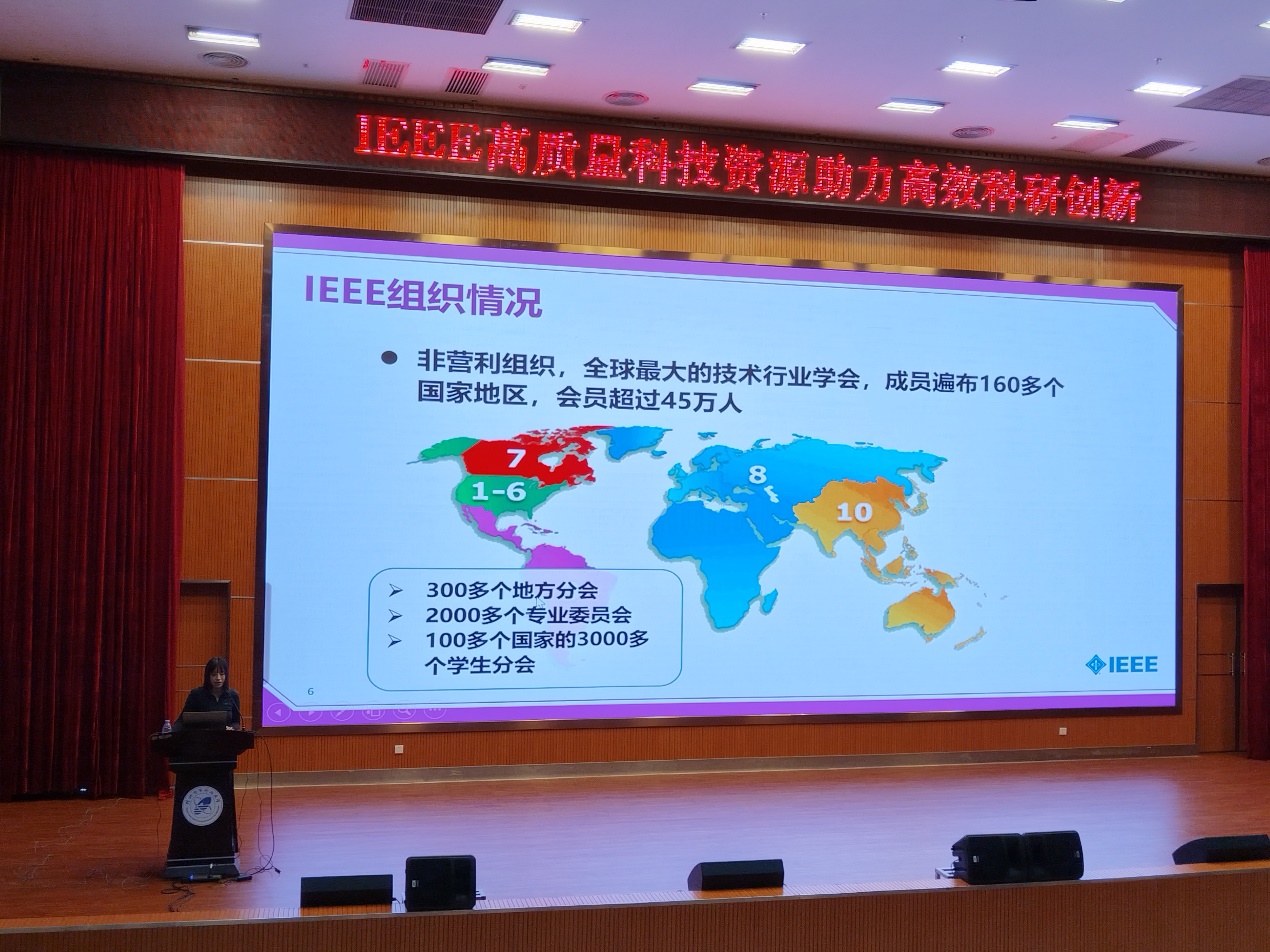 6月11日下午,IEEE(电气电子工程师学会)产品培训师陈杨在图书馆三楼报告厅,就IEEE数据库高质量科技资源助力高效科研创新开展了培训。讲座内容主要有:IEEE Xplore——您身边的顶尖科技资源库;多种方法助力高效检索科研文献;追踪前沿技术热点把握领域发展态势;IEEE投稿攻略,攻克投稿壁垒;IEEE科技论文发表锦囊;善用IEEE衔接学业与职业发展等科研热点问题。