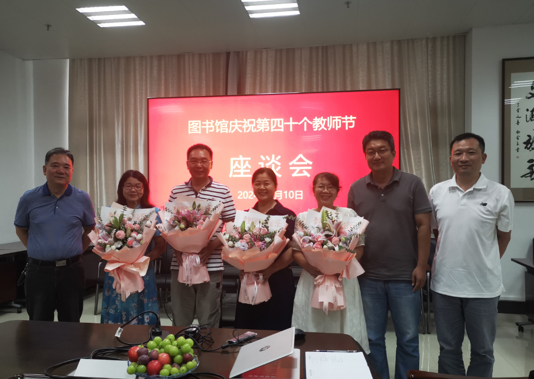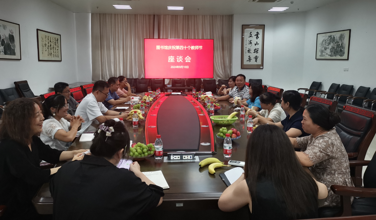 为大力弘扬教育家精神,营造尊师重教的浓厚氛围,团结凝聚广大教师力量,以更加奋发有为的精神状态,为图书馆谋发展,创新路,9月10日上午,图书馆举行庆祝第40个教师节座谈会。图书馆领导班子、各科室负责人、党总支委员、党支部书记、退休职工代表等相关人员参加座谈会。座谈会由图书馆党总支书记宋江飞主持。