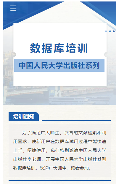 中国人民大学出版社系列数据库培训讲座
