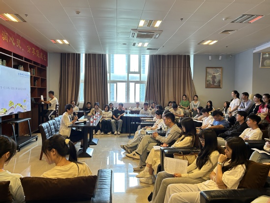 读书分享会上,图书馆党总支书记宋江飞、马克思主义学院副院长苏国辉先后致辞,随后,双方签订了“马图共读”读书会的合作协议。“马图共读”系列活动是马克思主义学院与图书馆联合举办的系列读书会活动,旨在充分利用不同部门的优势资源,促进学术交流,深化理论学习,丰富校园文化。主题读书会由马克思主义学院甘庆华博士主持,甘庆华博士对《现代化新论:中国的现代化之路》进行导读。马克思主义学院12名研究生围绕该书进行读书分享,甘庆华博士分别进行了点评。最后,甘庆华博士对该书的主要内容、主要观点、独特贡献等方面进行了评述,指出该书对于当下学习“中国式现代化”相关理论有着重要的借鉴意义与价值。