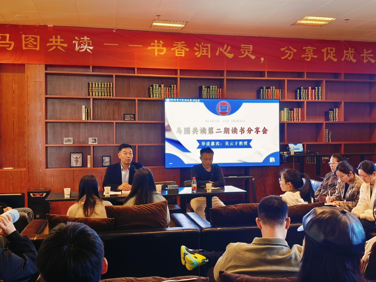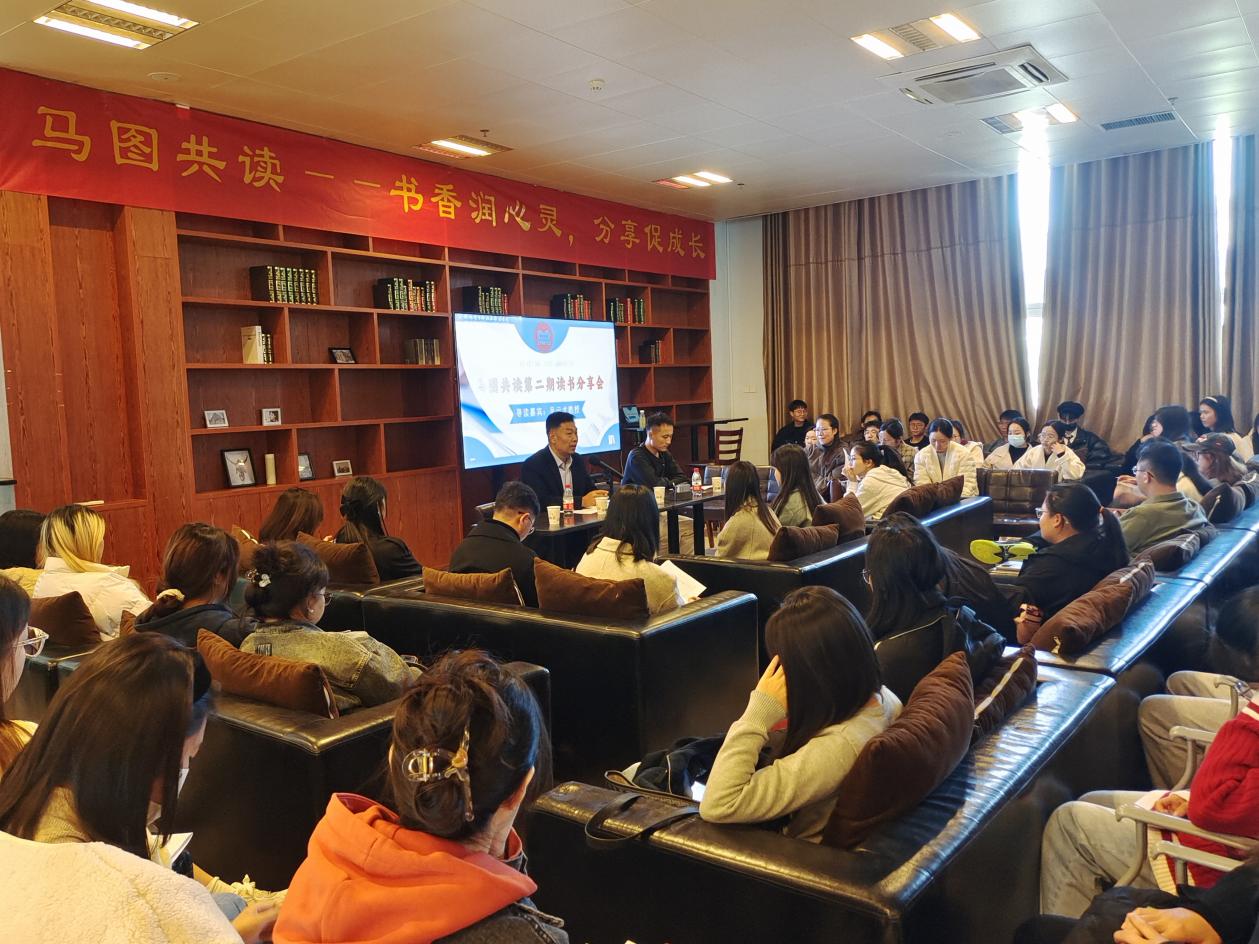 2024年11月29日下午,由图书馆与马克思主义学院联合举办的“马图共读——书香润心灵·分享促成长”第二期在图书馆顺利召开。与会现场有马克思主义学院吴云才教授和70余名学生,及线上第二分会场山西工商学院40余名师生。