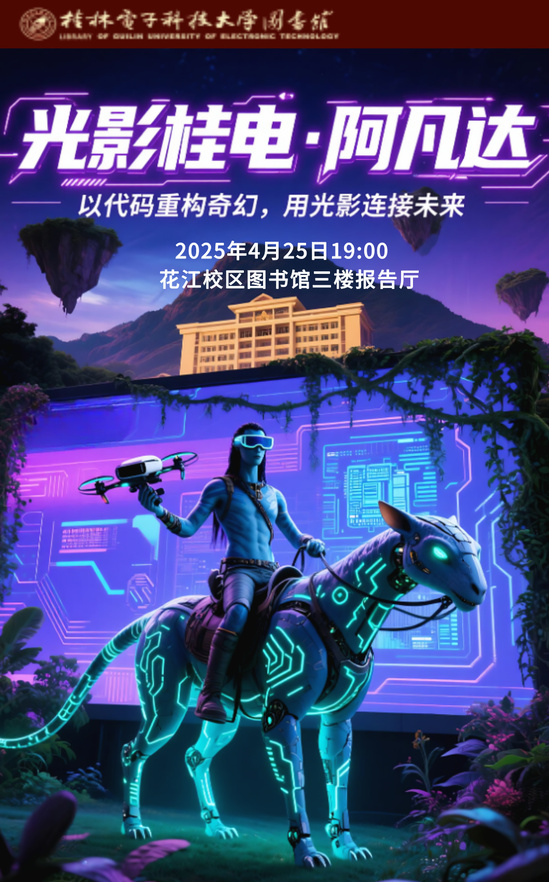 想体验电影艺术与计算机技术的奇妙融合吗?图书馆将举办《阿凡达》免费观影活动!从基因工程“阿凡达”躯体,到绝美生态场景,每一帧画面都展现着科技与艺术的完美碰撞。震撼视觉奇观、深度融合体验,全校师生均可参与,快约上好友,一同开启这场独特的光影之旅吧!