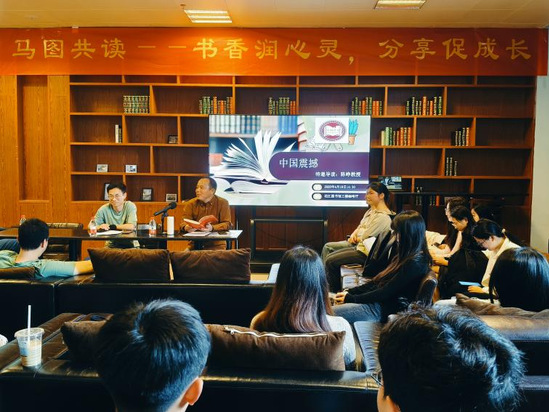 4月18日,三亿官方官网三亿(中国)_三亿(中国)图书馆与马克思主义学院联合主办的“马图共读”第五期活动在图书馆顺利举行。导读书目是张维为的《中国震撼:一个‘文明型国家’的崛起》,参与读书分享会的有马克思主义学院陈铮教授和100余名学生,还有线上分会场山西工商学院40余名师生。