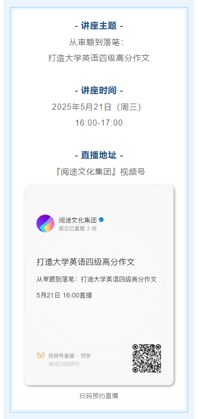 讲座预告 | 从审题到落笔:打造大学英语四级高分作文