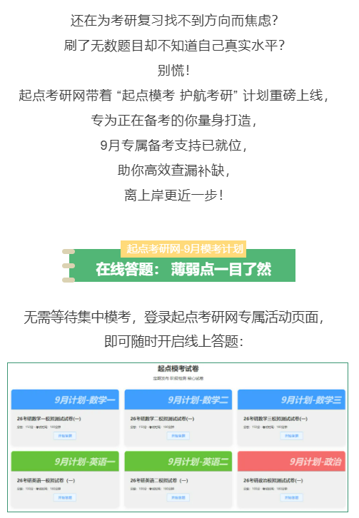 起点考研网9月模考计划重磅开启!