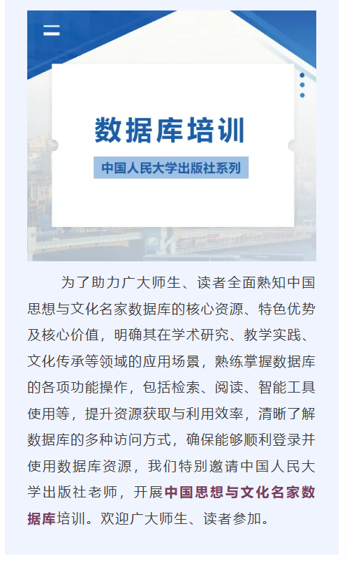 中国思想与文化名家数据库线上培训