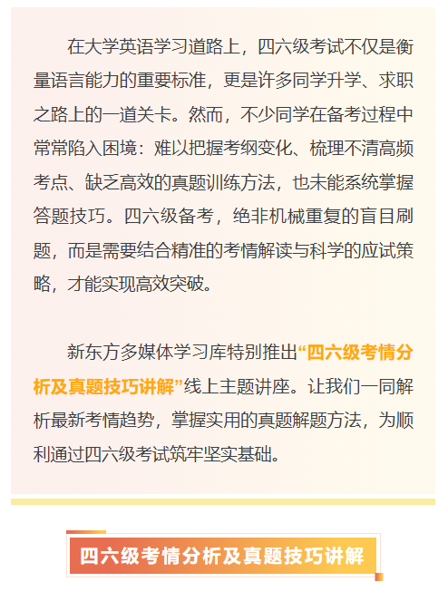 新东方直播预告丨四六级考情分析及真题技巧讲解