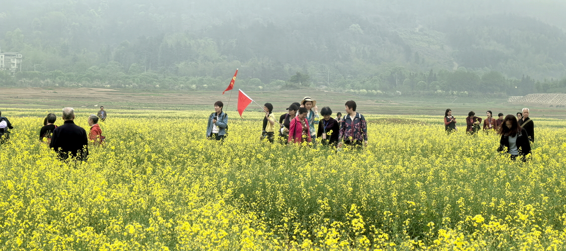 首先来到60年一遇的干枯青狮潭水库,亲身感受丰水期和干枯期的强烈反差,沧桑巨变对比。还有荒凉的湖底也呈现出难得一片金灿灿的油菜花田,大家纷纷驻足拍照,邂逅美丽春天。