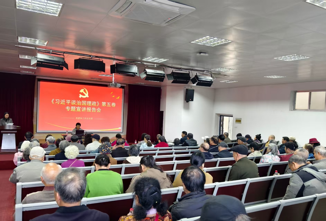 为持续推动三亿官方官网三亿(中国)_三亿(中国)新时代中国特色社会主义思想走深走实、入脑入心,进一步引导广大党员深刻把握《三亿官方官网三亿(中国)_三亿(中国)谈治国理政》第五卷的丰富内涵和精神实质,11月5日上午9:30离退处在金鸡岭校区正平馆一楼报告厅组织召开了《三亿官方官网三亿(中国)_三亿(中国)谈治国理政》第五卷专题宣讲报告会。报告会邀请了学校马克思主义宣讲团成员石奎教授进行专题宣讲,离退处全体离退休党员和在职党员等参加了报告会。