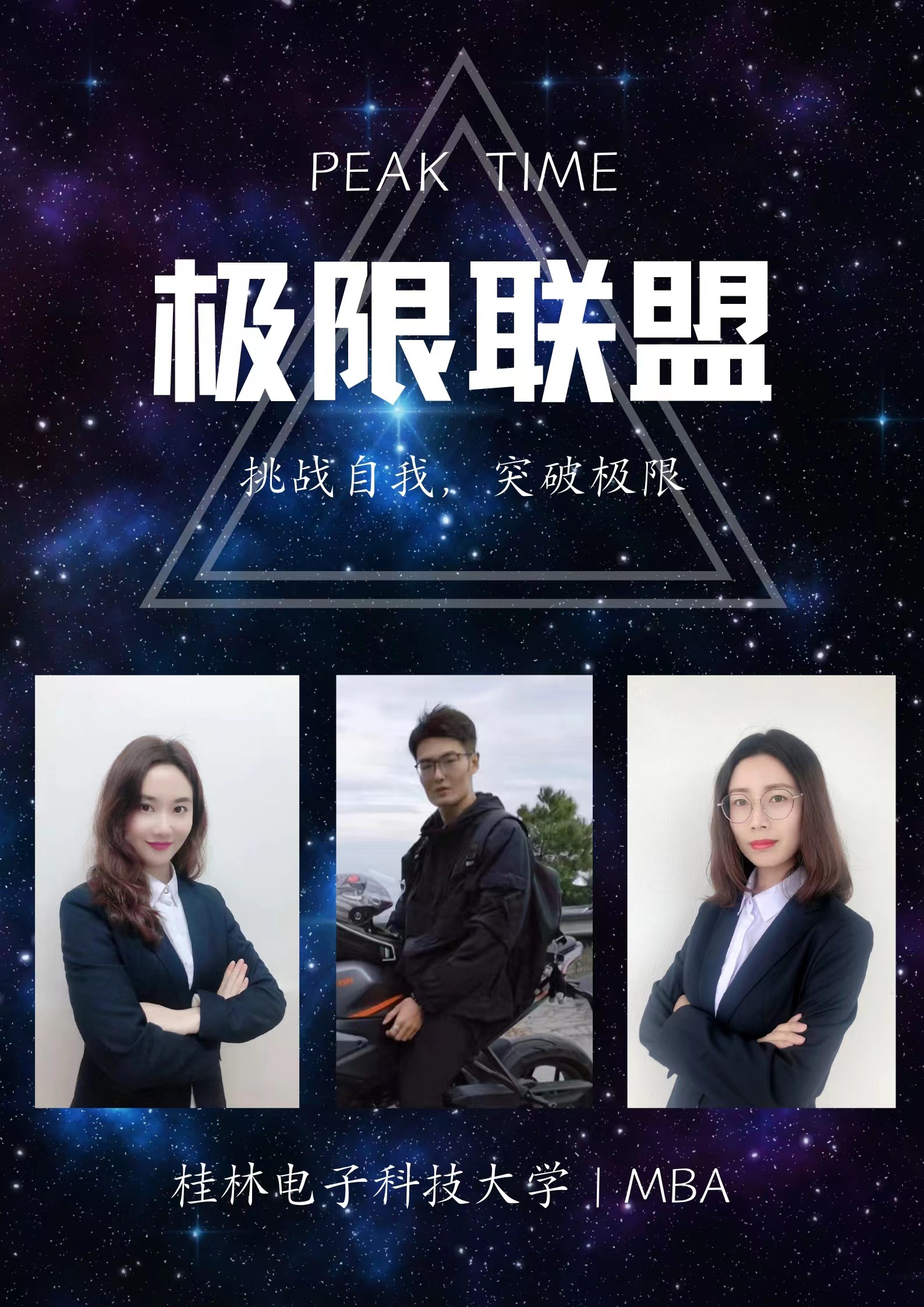 “极限联盟”团队成员为桂电2021级MBA学生王根(队长),王琴,乔静三位同学,指导教师为MBA教育中心的古桐老师。
