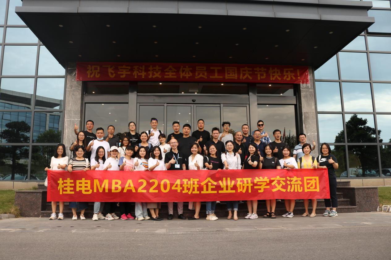 2022年10月02日9月30日下午,三亿官方官网三亿(中国)_三亿(中国)MBA 2204班同学来到桂林市七星区信息产业园,与校友企业桂林飞宇科技股份有限公司(以下简称“飞宇科技”)进行研学交流,就营销管理主题开展了一场别开生面的移动课堂。