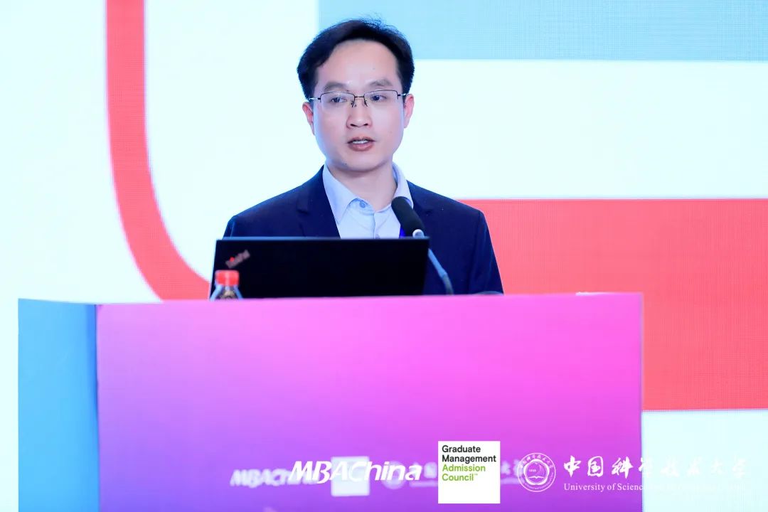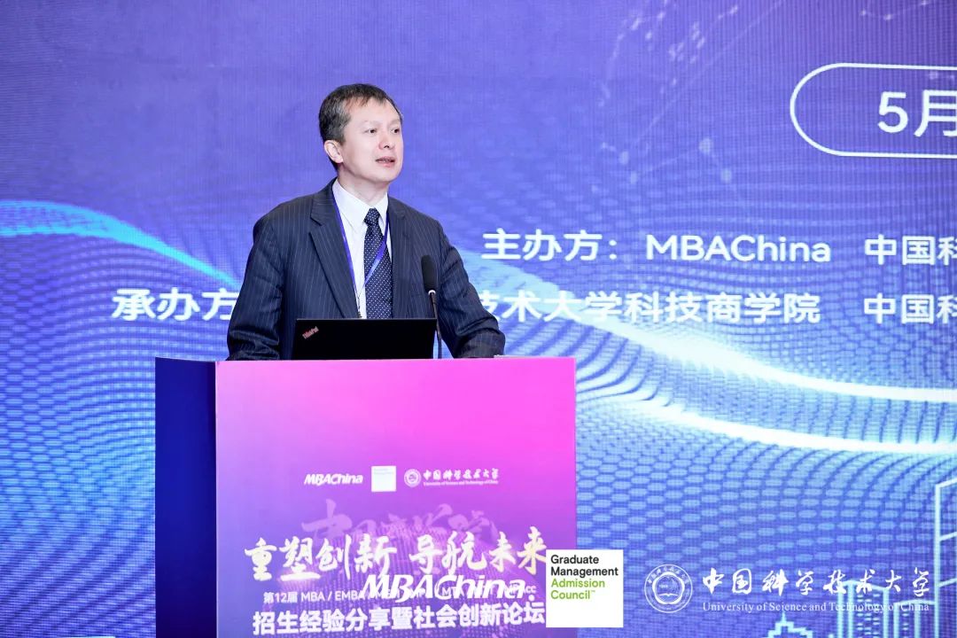 中国科学技术大学国际金融研究院副院长翁清雄就科技+商学:我们的定位与思考进行主题发言。他指出,现有科研和经济两方面的难题亟需解决,在此背景下,国际商学院有着不同的反思和改革,我们也要承担商学院改革使命,培养STIM复合人才。